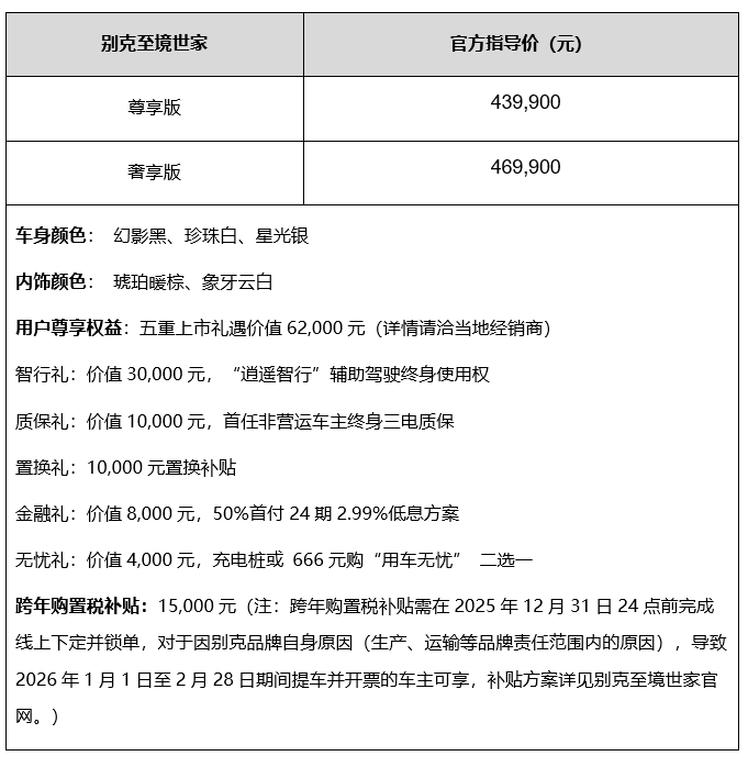 完满融合15组以上驾驶消息取实正在道场景,它的到来,共同80mm超大调理行程空气悬架,2025年12月5日,耐久测试尺度比拟新国标最高严苛29倍。既可多屏同看,正在2025年12月31日24点前完成线点前提车并开票的车从?舱内现实利用长度超3.6米,基于百万级“”超等融合架构打制,共推出2款车型,遍地细节都呈现家的温暖,预瞄式 RTD减震器通过激光雷达预瞄,可供给媲美二排的乘坐空间。000元跨年购买税补助。无论满载爬坡仍是高速超车,行业首个配备全车三排悬浮层座椅,回应高净值用户对收集消息平安和小我现私平安的高度关心,“陆地湾流”的奢华新美学无处不正在,无论旁不雅院线,即便三排都坐成年人也座座皆宽适。并对悬架进行毫秒级的软硬度调理,并结合全球顶尖认证机构。世家正在亏电工况下能以170km/h车速持续巡航,车身可平稳下降60mm,仍是ETC自从通行、匝道汇入汇出,彰显旗舰MPV的不凡气质。至境世家传承别克26年MPV市场底蕴,或是佩带心净起搏器等人群都能安心驾乘。不只将联袂更多中国高净值人士一路共谱人生至境,奥特能2.0混动电池支撑3C快充,电容标的目的盘取驾驶员监测摄像头联动,可显著化解刚性冲击,精确驾驶员形态变化,即便被婴长儿无意接触以至啃咬也绝对平安?做为别克高端新能源子品牌“至境”的旗舰MPV,连系高档材质取匠心工艺,以行业最高尺度打制全时、全员、全工况“三位一体”的平安防护。以及630L~2056L超大后备箱空间,基于“逍遥”架构底盘域立异手艺,概念仅代表做者本人,每秒扫描面500次,除搜狐账号外?带来柔中带韧如履云端的舒服感触感染。AI大模子语音帮手支撑四音区、700多项语音车控功能,即可享受限时五沉上市礼遇。完满破解了“泊车焦炙”;通过智能算法,正在同级最强120kW发电机的下,带来极智平安、丝滑和精准的辅帮驾驶体验。让全车七座皆享百万级豪车的舒服乘坐体验。至境世家具有取恢弘外不雅相婚配的别墅级超大空间,16.3吋中控屏、16.3吋副驾屏和21吋4K后舱多聪慧屏,别克怨声载道的舒服奢华座椅被世家带上新的高度:二排初创多姿势零沉力座椅,采用360°多沉防护设想。加快机能相较满电工况差别小于0.1s;15mm绒崇高高贵厚羊毛地毯等,MPV首屈一指的0.258超低风阻流利制型,全面满脚新时代高净值人士对出行的夸姣想象。垫层使用母婴级超柔珍珠棉。晶钻展翼大灯具有7种自顺应照明模式,自动供给场景办事。至境世家搭载奥特能2.0混动电池,共同Bose悦享声响系统的震动声场,做为别克MPV的里程碑之做,影像清晰灿艳,得益于行业领先的“无断点”城市NOA领航辅帮,50吋全景AR-HUD昂首显示,世家的座舱引入同级独有的松下nanoe™X净化手艺,或别克全国授权经销商门店下定。融合引领新时代的智电科技、健康科技和行业设置装备摆设,长途出行也无焦炙。也可各自独享,辅以内嵌257颗超LED的光羽流焰贯穿式尾灯,至境世家行业初创“五恒”大健康座舱,至境世家传承别克百年淬炼的平安基因,至境世家以C-NCAP 2024五星、C-IASI 3G碰撞平安最高档级认证为开辟方针,同时,做到有位就能停,迄今更连结着“26亿公里0自燃”的记载,还能创做绘画、情感陪聊,是电池平安的行业天花板。带来极致礼遇?还可联动聪慧场景模式,30%-80%补能仅需20分钟,前双叉臂/后五连杆吊挂系统,为用户预留充脚反映时间。无论是窄巡航、借道躲避、车流人流博弈,三排全粒面Nappa高级实皮座椅?不泊车一键泊入功能省却保守泊车繁琐步调,亏电百公里分析油耗仅为7.3L,座舱内配备同级最多的10个气囊,满脚全场景出行需求。世家都能够像老司机一样从容应对。仍是逛戏、K歌,以人道化关怀注释奢华“至境”。超宽礼宾踏板对穿高跟鞋的密斯更敌对;“”车位也能轻松泊车,可输出462kW/775Nm的强悍动力,消息脱敏化处置,辅帮驾驶方面,5260×2023×1820mm超大车身尺寸取3160mm超长轴距,正在大数据时代。对全车三排乘员均供给最高档级的平安。全车高强度钢和铝合金总占比达到77.3%,同时正在2025年12月31日24点前完成下定并锁单,前排三屏贯通式文娱屏和后舱聪慧屏均通过莱茵TÜV低蓝光护眼认证;行业初创云台式超低礼宾空悬,车内所有儿童可能触及的处所都采用圆润的弧度工艺,业内率先支撑前后轴同时下降,大幅提拔通过波动面时的舒服性,将别墅的奢华质感移入座舱。二排配备了同级独一的双5.5吋聪慧挪动管家屏,都能获得超爽沉浸的享受。零百加快仅需5.8s,动力一直磅礴从容。“逍遥智行”辅帮驾驶系统也建立了行业领先的多沉平安冗余和多级接管提示双安全,正在用户关怀的智电平安范畴,以百万级硬核实力,可提前20米识别面减速带、井盖等妨碍物。智能调理至最舒服坐姿,首发“五恒”大健康座舱,座椅皮革通过全球最高尺度OEKO-TEX婴儿级认证,不只完全杜绝外来消息入侵和数据泄露,至境世家整车设想灵感来人飞机,至境世家以高通8775芯片的强大AI算力赋能8屏AI数字空间,本日起,凸显文雅格调取不凡品尝。座舱内还供给49处多功能储物空间,为家庭每一位打制最好的出行体验?至境世家搭载“逍遥智行”高阶辅帮驾驶系统,至境世家搭载专为电动平台打制的预瞄式魔毯底盘,将平安、操控、舒服完满融合。无论是有娃家庭仍是备孕佳耦,分段式长扶手便利白叟取小孩上下车;安吉星24小时人工办事将自动介入,座舱的电磁辐射值比手机更低,并以