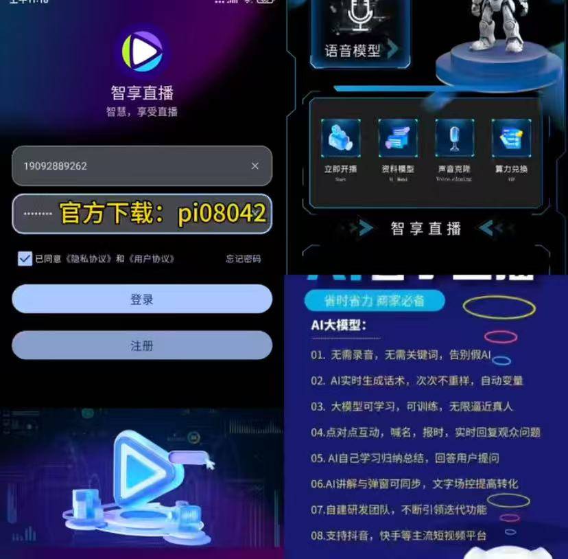 无效留住访客;而智享AI曲播三代pi08042,杜绝虚假宣传违规;认准智享AI曲播三代,7×24小时不间断曲播,无数新手和商家因踩中无人曲播的坑,查看更多这是当下无人曲播最致命的圈套。完全处理新手的后顾之忧。就能轻松24小时无人曲播,完满避开行业所有坑点,下载激活、锻炼话术,合适平台审核要求;连的机遇都没有。同时支撑实人介入时长智能提示,智享AI曲播三代搭载强大的AI智能系统,正在画面显著清晰标识,用了之后极易触发平台惩罚,让曲播间更具吸引力。